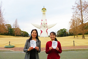 勉氏が散歩で訪れた太陽の塔をバックに