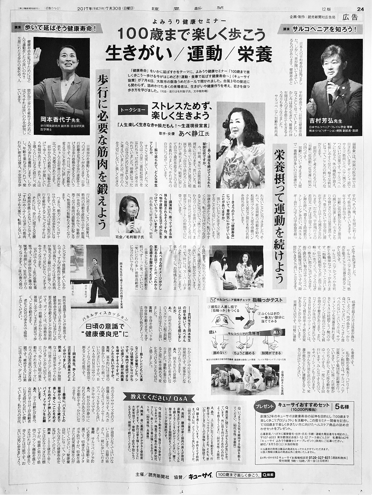 「100歳まで楽しく歩こう」生きがい・運動・栄養 よみうり健康セミナー